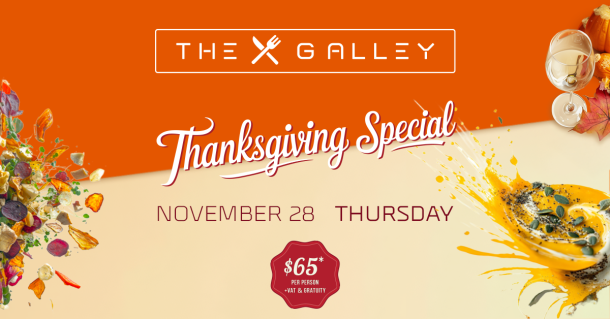 Join The Galley’s Thanksgiving Special on November 27! Enjoy a festive four-course plated menu, including a glass of Xquisite red or white wine, for $75.
